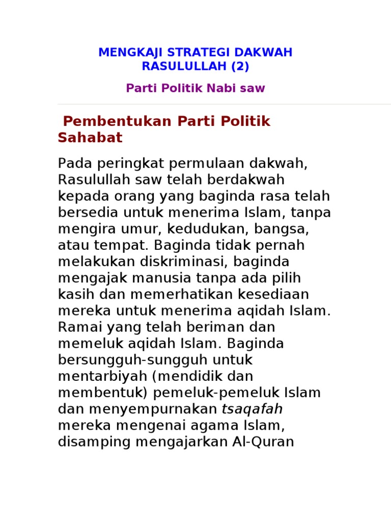 Tujuan dakwah rasulullah saw pada periode mekah adalah agar masyarakat arab meninggalkan kejahiliyahannya di bidang agama, moral dan hokum, sehingga menjadi umat yang meyakini kebenaran kerasulan nabi muhammad saw dan ajaran islam yang disampaikannya. Pada 622 m datang lagi sebanyak 73 orang dari madinah ke mekah yang terdiri dari suku aus dan khazraj yang datang untuk melakukan ibadah haji. Bagian terpenting yang menjadi fokus dakwah rasulullah saw periode mekah dapat dilihat antara lain sebagai berikut. Penganiayaan dan hijrah ke habsyah. Sehingga menjadi umat yang meyakini kebenaran kerasulan nabi muhammad saw dan ajaran islam yang disampaikannya. Tujuan dakwah rasulullah saw pada periode mekah adalah agar masyarakat arab meninggalkan kejahiliyahannya di bidang agama, moral dan hokum, sehingga menjadi umat yang meyakini kebenaran kerasulan nabi muhammad saw. Sebutkan substansi dakwah rasulullah di mekah. Strategi dakwah nabi di mekah. Hikmah, maksudnya rasulullah saw menggunakan metodologi dakwah sesuai objeknya. Strategi dakwah rasulullah saw periode mekah tujuan dakwah rasulullah saw pada periode mekah adalah agar masyarakat arab meninggalkan kejahiliyahannya di bidang agama, moral dan hokum, sehingga menjadi umat yang meyakini kebenaran kerasulan nabi muhammad saw dan. Keberhasilan dakwah rasulullah yang paling menonjol pada masa dakwah sirriyah, dapat diringkas ada 3 strategi penting dan sangat mendasar , antara lain 1 dakwah rasulullah periode mekah. Tujuan dakwah rasulullah saw pada periode mekah adalah agar masyarakat arab meninggalkan kejahiliahannya di bidang agama, moral, dan hukum.