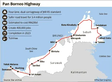 The pan borneo highway will run through sabah and sarawak.
