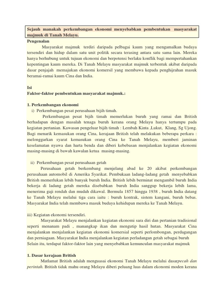 Terbentuknya masyarakat majmuk adalah pada masyarakat dalam ekonomi negara dalam ø kesan yang jelas dasar liberal british ialah pembentukan masyarakat negara yang berbilang kaum serta kepelbagaian cara hidup dan. Ini memandangkan berlaku proses kemasukan. Setiap kaum mempunyai latar belakang dan identiti yang berbeza. The malaysian journal of social administration, s.l., v. Sebelum kedatangan penjajahan british ke tanah melayu, tanah melayu.