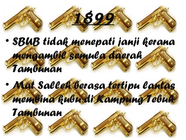 •semangat perjuangan jihad orang sulu menentang sepanyol di selatan filipin. Mat salleh tewas dan meninggal dunia pada 31 januari 1900. Perjuangan mat salleh pada tahun 1975, mat salleh telah pergi ke sandakan untuk berunding dengan sbub tetapi tidak dilayan. Beliau membina sebuah kampung yang lebih kuat dan kukuh di kg. Perang ini tercetus pada 29 mei 1915 apabila berlaku perbalahan di antara tok janggut dengan sarjan che wan sulaiman seorang anggota polis british yang membawa kepada kematian sarjan che wan. Peristiwa penentanganperistiwa penentangan julai 1897 november 1897 april 1898 1899 1900. The exact origins of the expression are difficult to ascertain, due to there being several versions of the term's origin being passed down via word of mouth, with little or no official documentation to support such oral claims. 3 mengapakah mat salleh menentang syarikat borneo utara british(sbub) sbub mengenakan cukai yang tinggi, penggunaan tenaga buruh dengan. Dalam pertempuran ini, mat salleh telah gugur. 7.8 mat salleh menyanggah sbub. Peristiwa penentangan mat salleh terhadap pentadbiran syarikat borneo utara bristish sbub di sabah. 2 biodata mat salleh nama sebenarnya datu mat salleh. Mat salleh is a malay term used as a colloquial expression to refer to white people.